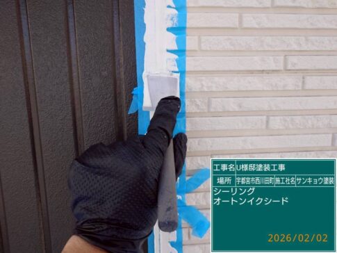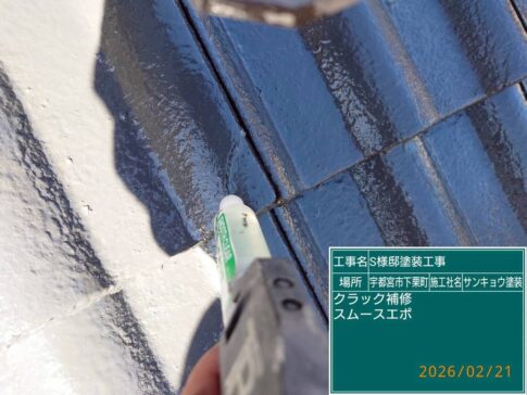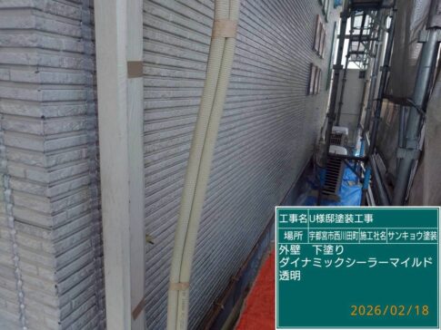 モルタル壁のヒビ割れは必ずUカット処理を行い、サイディング壁の場合はエポキシ樹脂補修材を充填しての処理を行います。