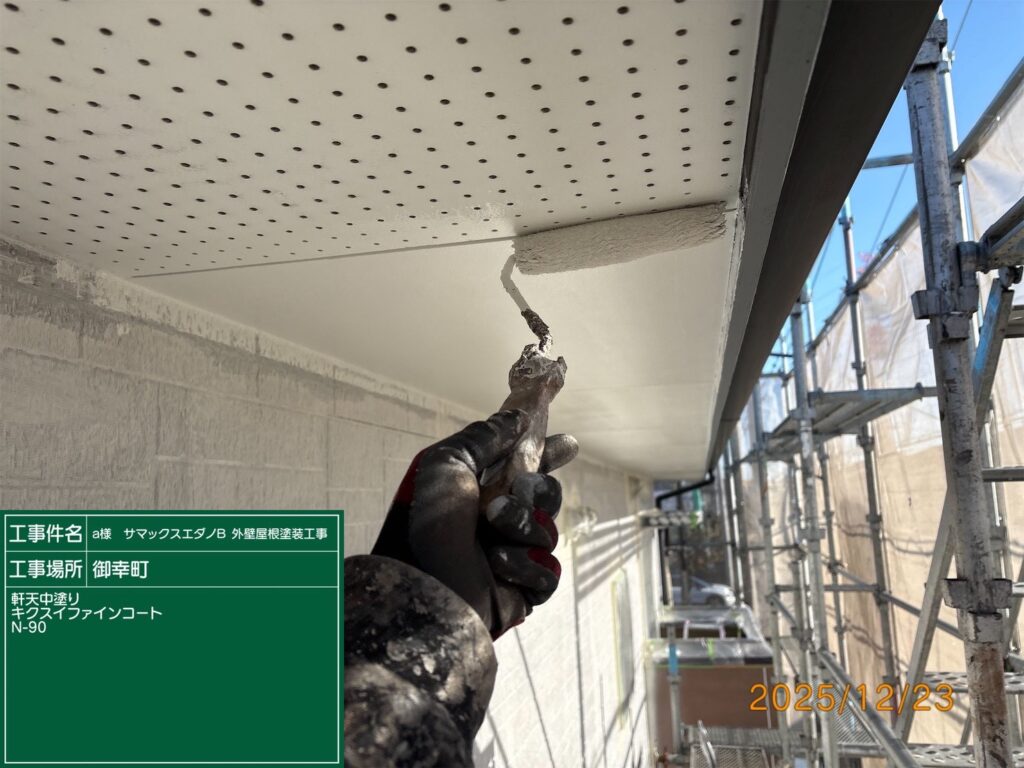 現場親方ブログ2025.12.23サマックスエダノ様いつもありがとうございます。本日の作業内容のご説明をさせていただきます。本日は宇都宮市御幸本町アパートサマックエダノ様軒天中塗りや屋根,外壁の中塗り作業をしてきました。本日の作業 2025.12.23無料お見積はこちら