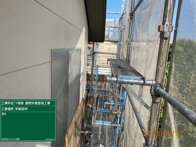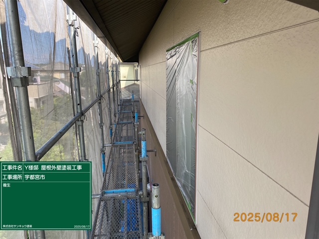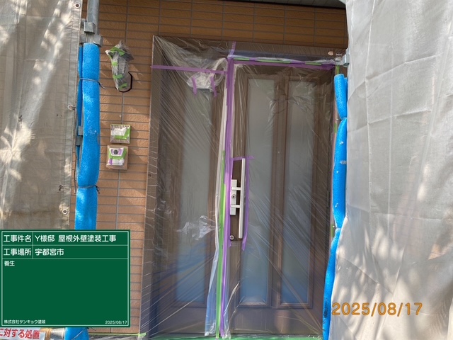 現場親方ブログ2025.08.17下岡本町Y様邸本日の作業 2025.8.17 いつもありがとうございます。盆休みも明けて今日から再び宇都宮市下岡町のY様邸邸での工事が始まりました。今日は窓や玄関ドアなどの養生作業をして来ました。無料お見積はこちら