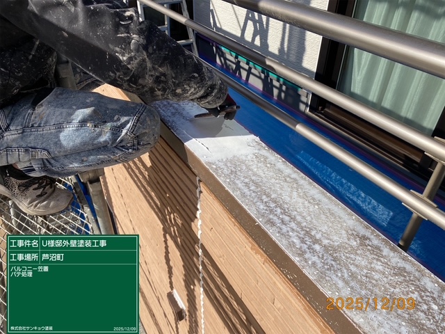 現場親方ブログ2025.12.09外壁下地処理・バルコニー下地調整・附帯部中塗り 芦沼町U様邸2025.12.9いつもありがとうございます。本日の作業内容のご説明をさせていただきます。本日は外壁の下地処理やバルコニー下地調整、附帯部中塗りなどの作業をしてきました。 無料お見積はこちら