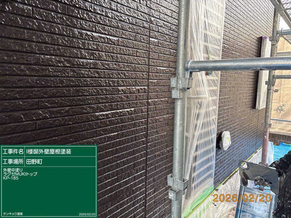 現場親方ブログ2026.02.20外壁下塗り・中塗り・屋根補修部中塗り・上塗り 宇都宮市田野町I様邸2026.2.20いつもありがとうございます。本日の作業内容のご説明をさせていただきます。本日は外壁下塗り及び中塗り、屋根補修部中塗りと上塗り作業をしてきました。無料お見積はこちら