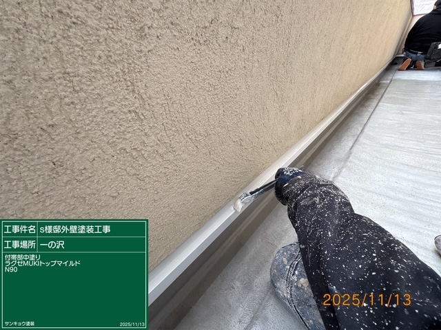 現場親方ブログ2025.11.13宇都宮市一の沢S様邸本日の作業 2025.11.13 いつもありがとうございます。本日は宇都宮市一の沢町S様邸でサイディング壁のクリアー塗装や附帯部の上塗り、バルコニー床の防水メンテナンス塗装などの作業をして来ました。無料お見積はこちら