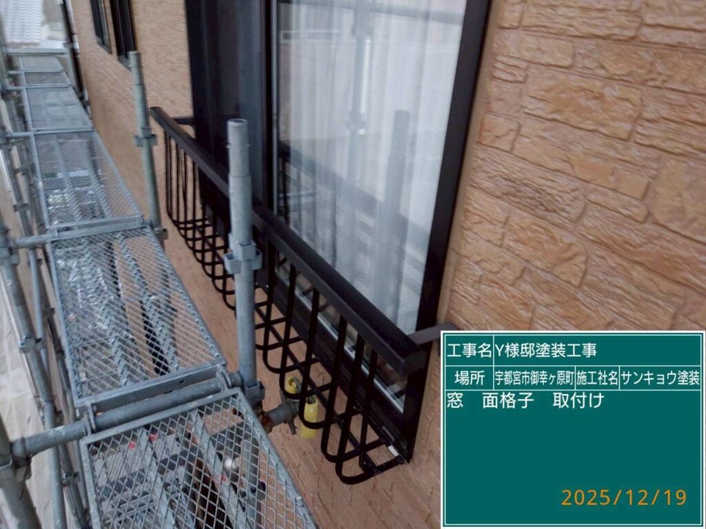 いつもありがとうございます。今日は宇都宮市御幸ヶ原町Y様邸の2階窓手摺りの取付に午後から伺いました。外壁関係は物干しの取付を行い27日の足場解体を待つだけとなりました。