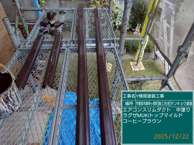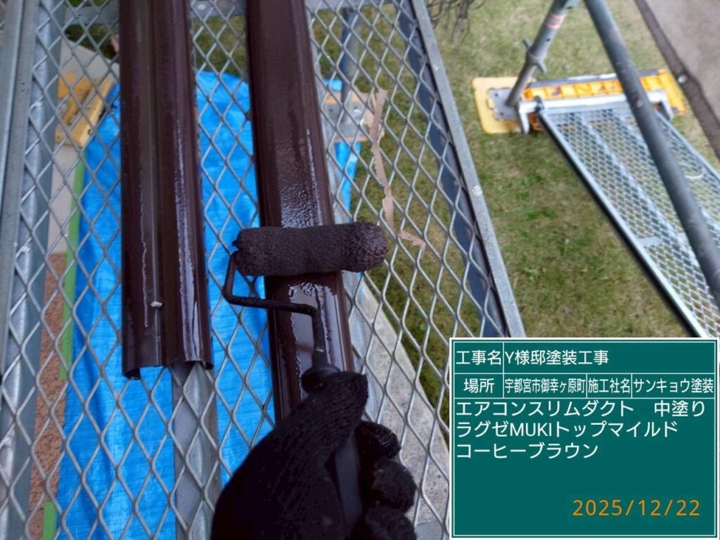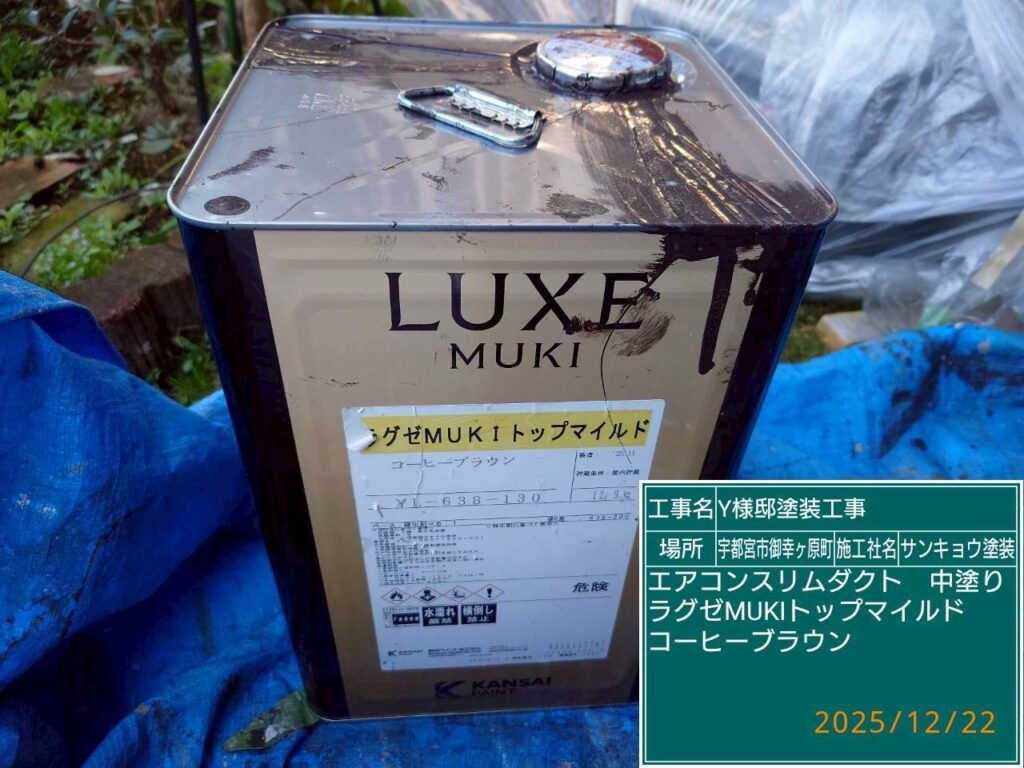 現場親方ブログ2025.12.22宇都宮市御幸ヶ原町Y様邸いつもありがとうございます。本日は宇都宮市御幸ヶ原町Y様邸でエアコンスリムダクトの上塗りや金具類の復旧取付などの作業をしてきました。本日の作業 2025.12.22無料お見積はこちら