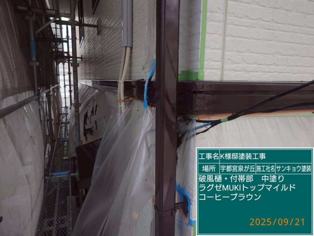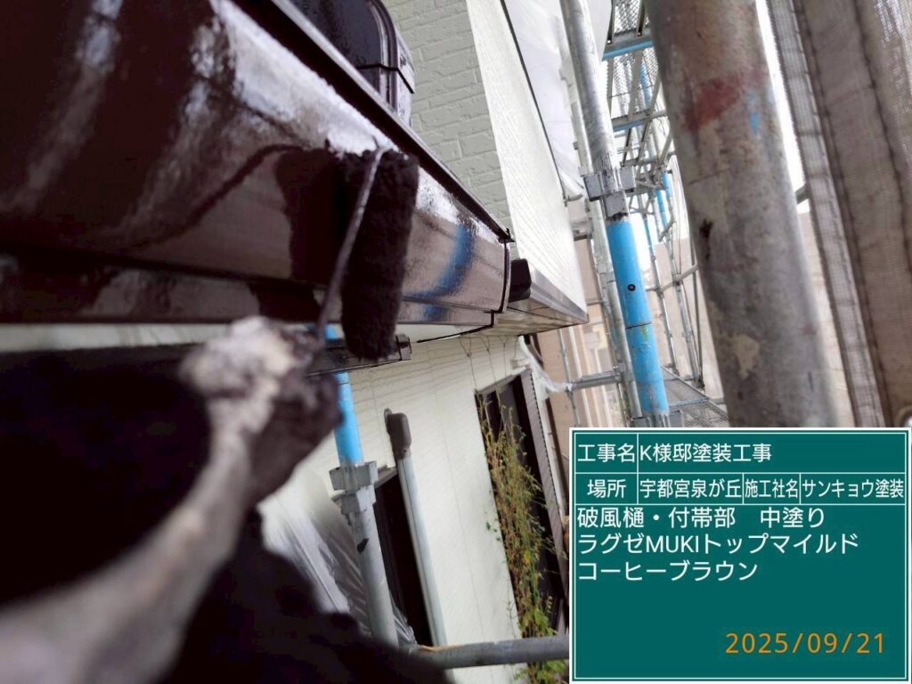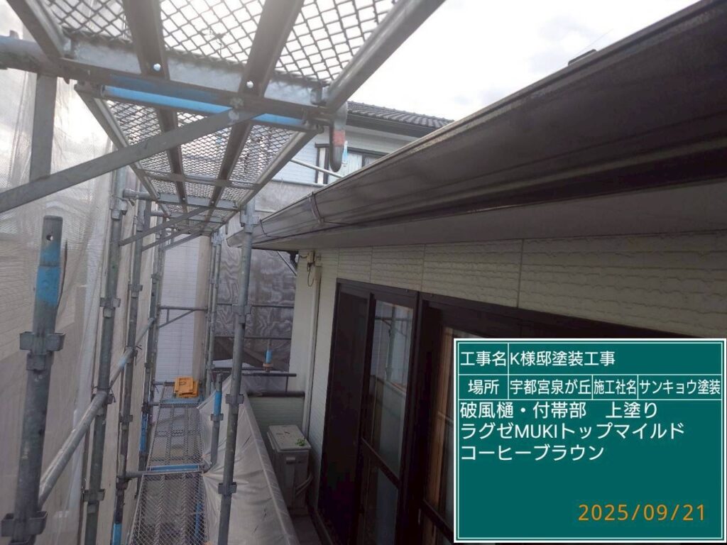 現場親方ブログ2025.09.21宇都宮市泉が丘K様邸本日の作業 2025.9.21 いつもありがとうございます。今日も宇都宮市泉が丘k様邸で鼻隠しや雨樋の中塗りや上塗り作業をして来ました。無料お見積はこちら