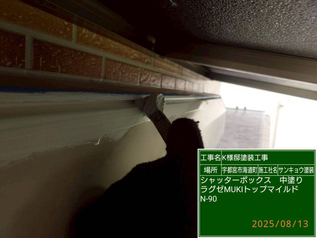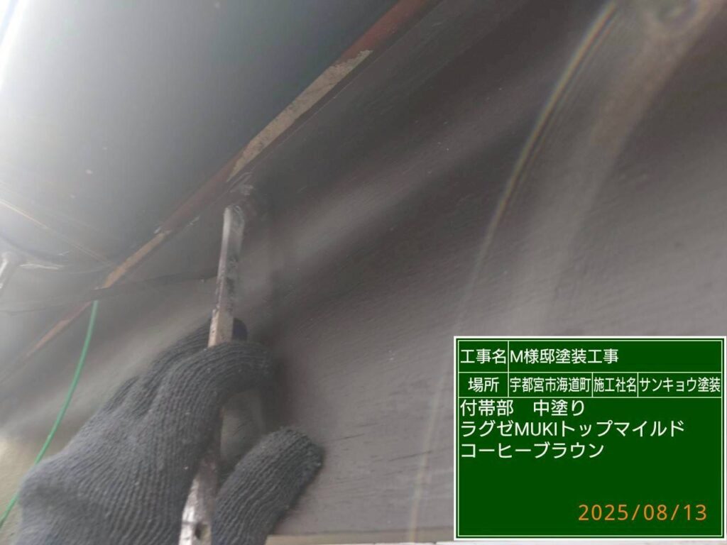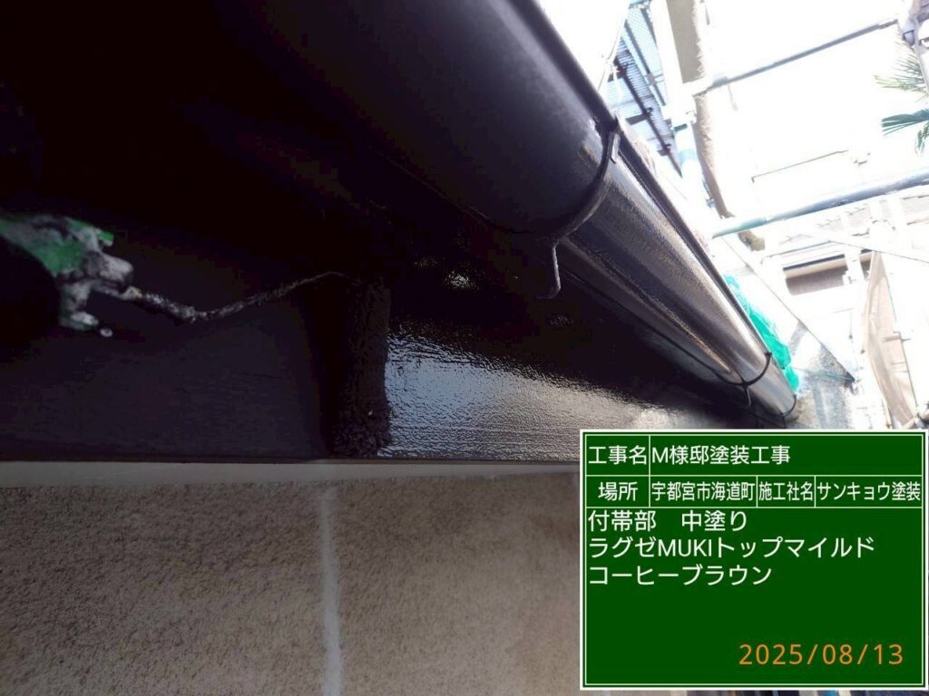 現場親方ブログ2025.08.13宇都宮市海道町M様邸本日の作業 2025.8.13 いつ通りありがとうございます。今日は宇都宮市海道町のM様邸で軒樋屋鼻隠しの中塗り作業をしました。鼻隠しとは軒樋を(横に付いている雨樋を取付けしている板の部分のことを言います。樋の付いていない部分を破風板わといいいます。無料お見積はこちら