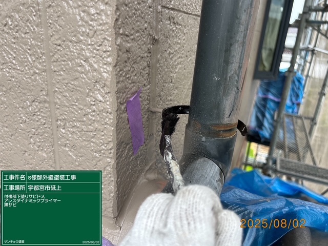 現場親方ブログ2025.08.02宇都宮市砥上町S様邸本日の作業 2025.8.2 いつもありがとうございます。今日は宇都宮市砥上町S様邸邸附帯部のケ素地調整や下塗りから中塗り及び一部上塗りなどの作業をして来ました。無料お見積はこちら