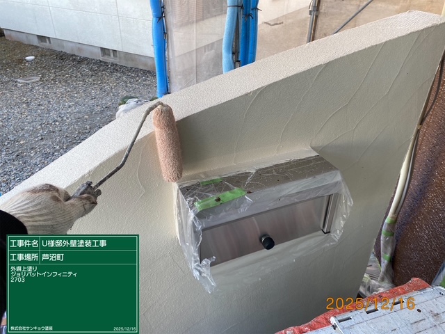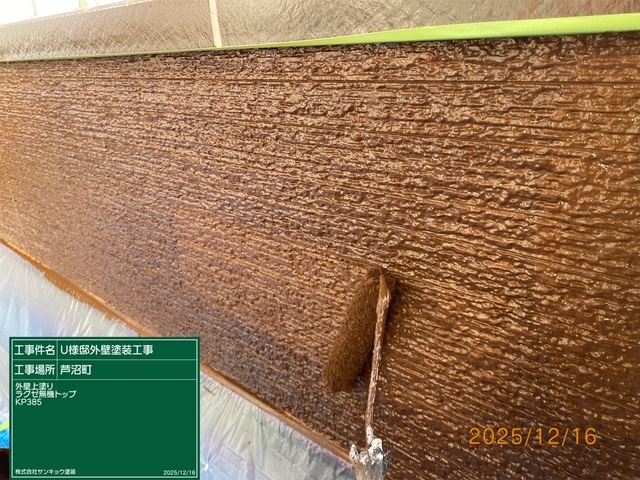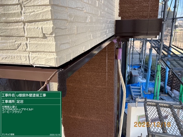 現場親方ブログ2025.12.16宇都宮市芦沼U様邸いつもありがとうございます。本日の作業内容のご説明をさせていただきます。本日は外壁の上塗りや附帯部の中塗りから上塗り,外塀の下塗りから上塗りまでの作業をして来ました。本日の作業 2025.12.16無料お見積はこちら