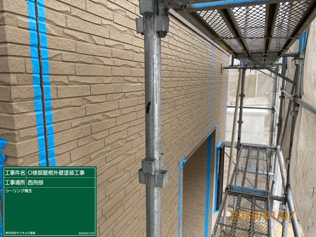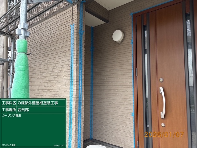 いつもありがとうございます。本日の作業内容のご説明をさせていただきます。本日は宇都宮市西刑部町O様邸でしたシーリングの養生テープ貼り作業をして来ました。