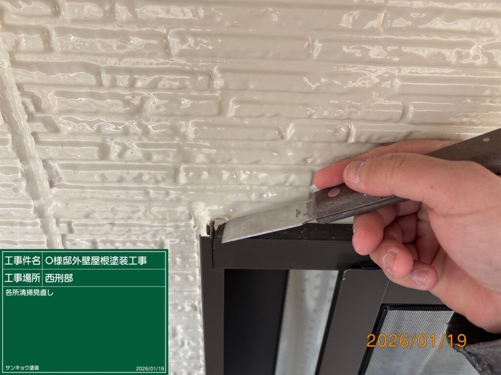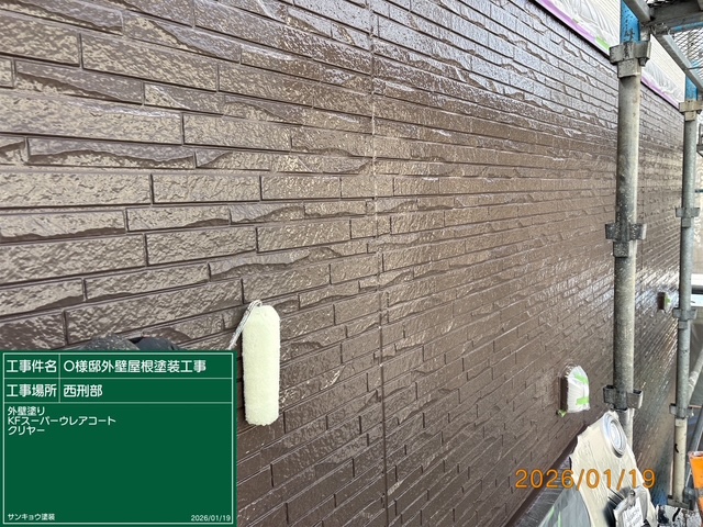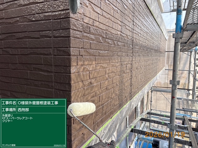いつもありがとうございます。本日の作業内容のご説明をさせていただきます。本日は、1階外壁の上塗りと2階回りの点検及び手直し清掃などの作業をしてきました。