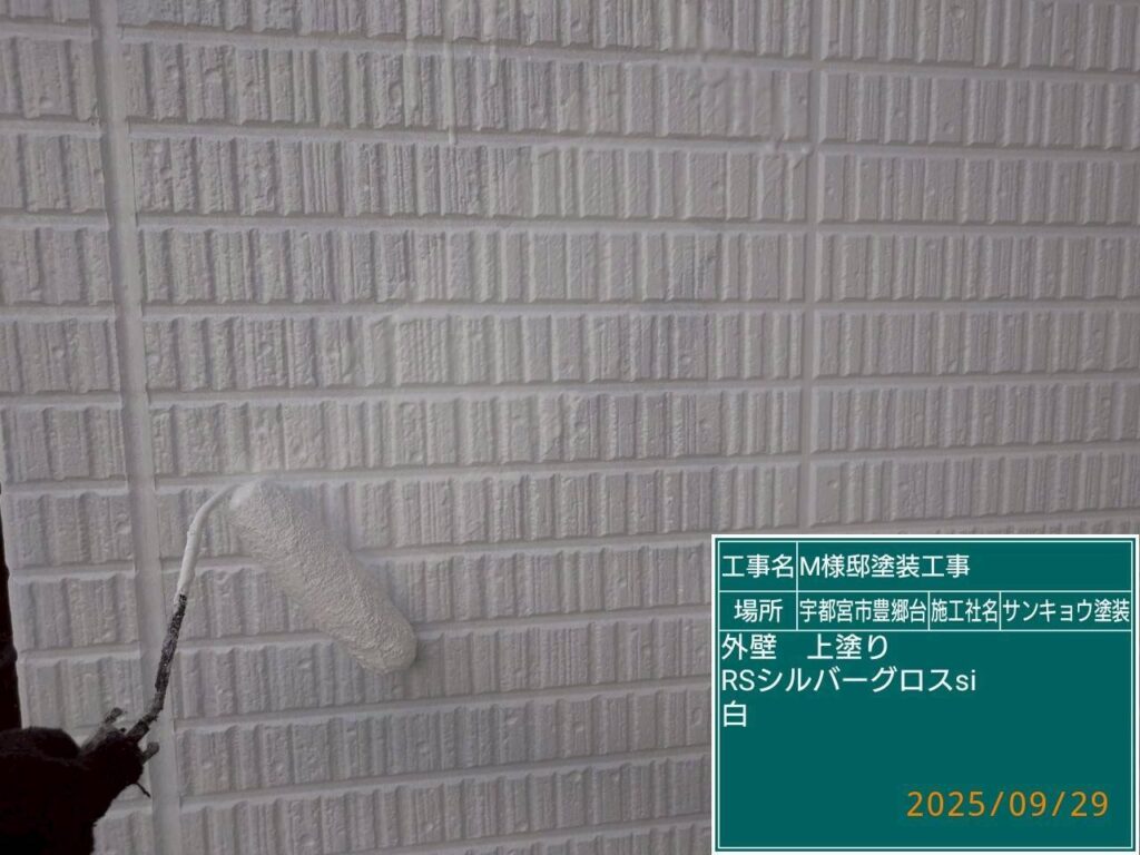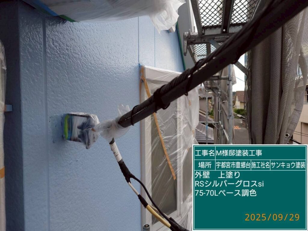 いつもありがとうございます。今日も宇都宮市豊郷台M様邸で外壁の中塗りや上塗りをして来ました。