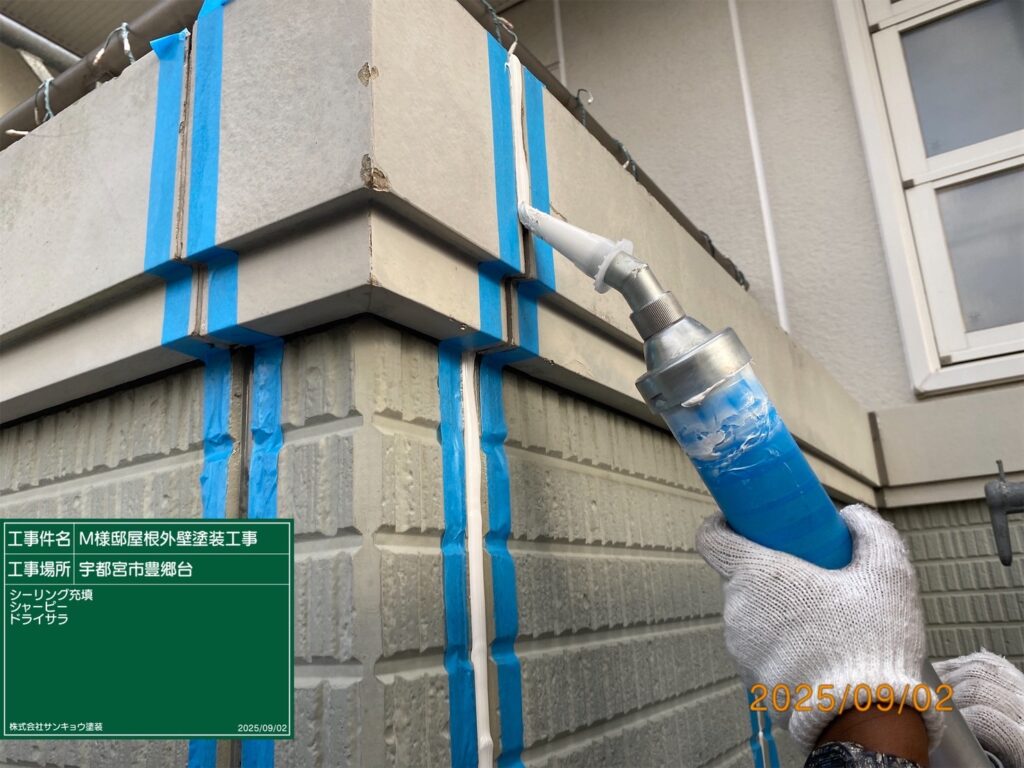 現場親方ブログ2025.09.02宇都宮市豊郷台M様邸本日の作業 2025.9.2 いつもありがとうございます。今日は宇都宮市市豊郷台のM様邸でサイディングや破風板各所シーリング工事遠して来ました。無料お見積はこちら