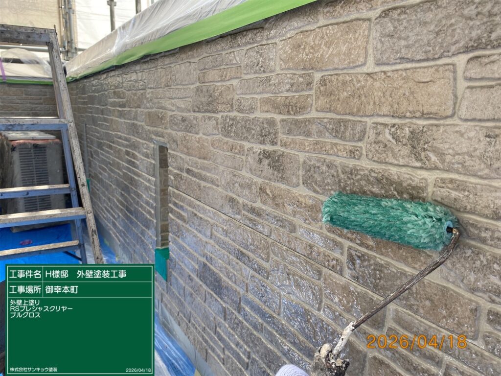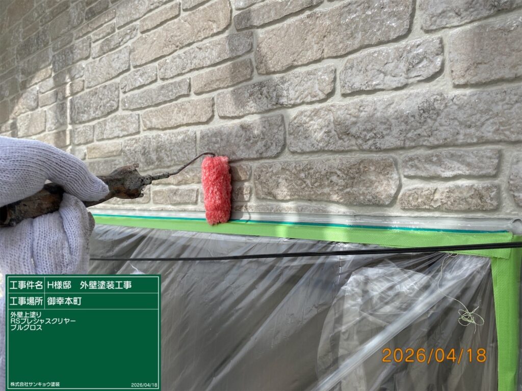 こんにちは現場担当の野中です。今日は宇都宮市御幸本町H様邸でクリアー塗装上塗りや破風板雨樋などの上塗り作業をしてきました。今回使用したクリアーは関西ペイントのラジカル制御シリコン塗料のRSプルシャスクリアーを使用しました。RSとは関西ペイントのメーカー認定をいただいた塗装店のみが使用できる塗料で、違いは関西ペイントの塗膜性能保証が7年付ということです。メーカ保証が気になる方にはおすすめのシリーズです。屋根外壁共にカラーが豊富ですのご興味がある方はぜひご連絡下さい。デザイン塗装も揃えてあります!