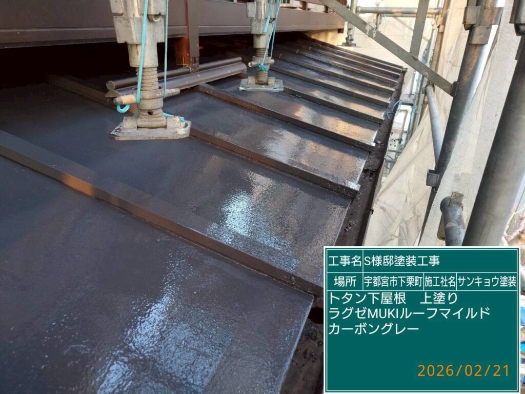 現場親方ブログ2026.02.21下屋根板金上塗り2026.2.21いつもありがとうございます。本日の作業内容のご説明をさせていただきます。本日は宇都宮市下栗町S様邸で下屋根板金上塗り1階窓枠上塗り各所見直しタッチアップ、タイル及び瓦部エポキシ樹脂補修軒樋、サッシ掃除などの作業をしてきました。無料お見積はこちら