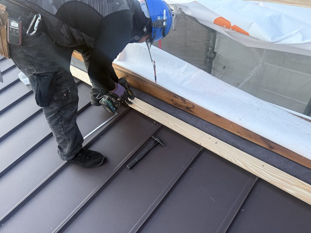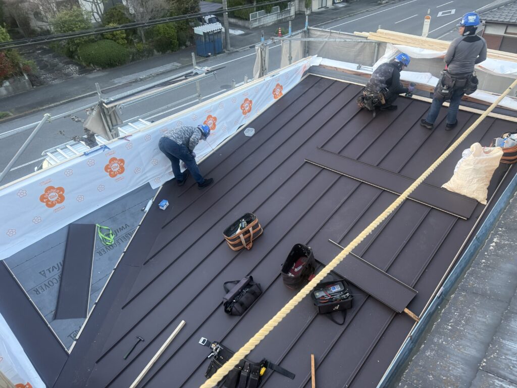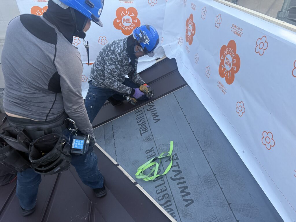 現場親方ブログ2026.04.16下屋根板金工事 宇都宮市立伏町A様邸2026.4.16こんにちは。現場担当の福田です。今日は宇都宮市立伏町グリーンタウン内A様邸で下屋根の板金取付けの作業をしました。今回使用した場板金材は断熱材付きで表面フッソ加工をしてある高耐久素材を使用しました。無料お見積はこちら