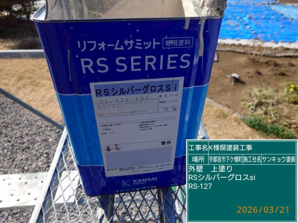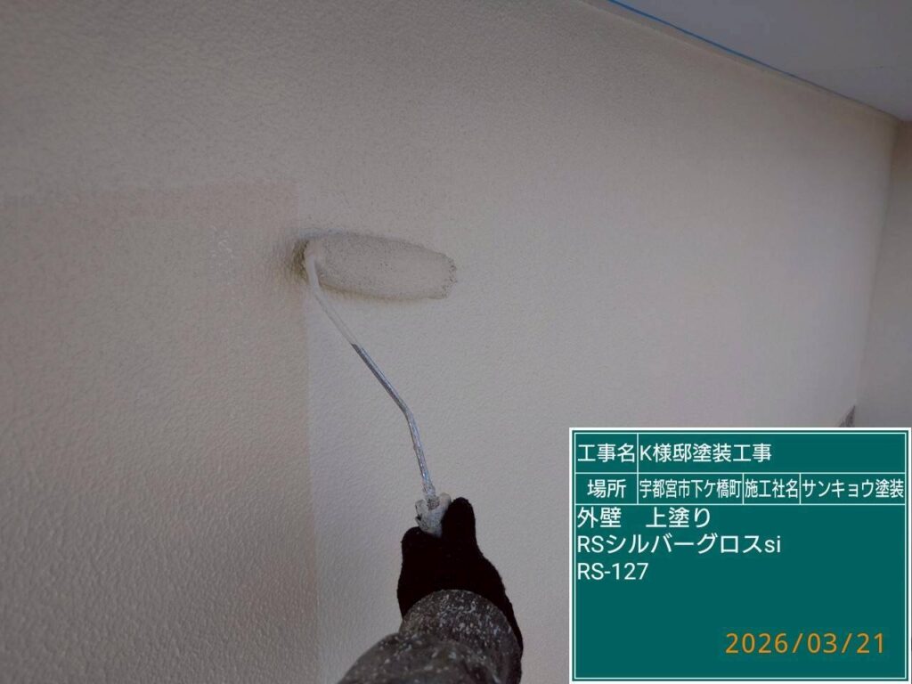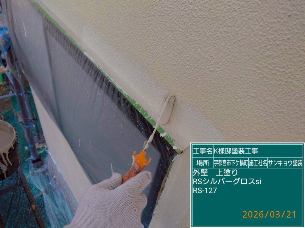 こんにちは現場担当の川又です。今日は宇都宮市下げ橋町K様邸で外壁の上塗り作業をしてきました。