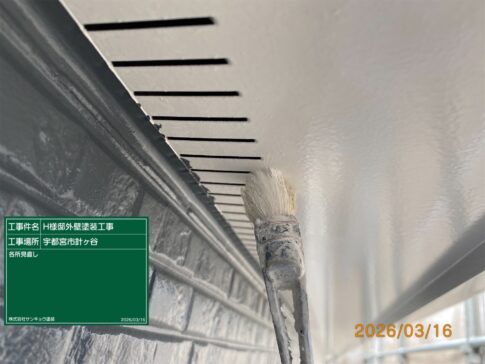 現場親方ブログ2023.10.21外壁上塗り及び附帯部塗装 宇都宮市砥上町 H様邸本日の作業 23.10.14 職長の野中です。いつもありがとうございます。それでは本日の作業内容のご説明をさせて頂きます。本日は外壁の上塗りを行い、附帯部のケレン及び錆止め塗装を行いました。使用材料はエポキシ系錆止めエポマリンGXを使用しました。無料お見積はこちら
