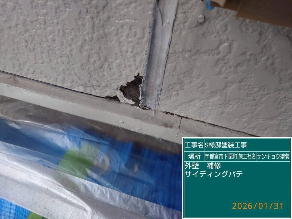 いつもありがとうございます。本日の作業内容のご説明をさせていただきます。本日は宇都宮市下栗町S様邸で外壁の下地補修と下塗り作業をして来ました。下塗り材料は関西ペイントのアレスダイナミックシーラマイルド遠使用しました。また下地補修材料は窯業系専用のサイディングパテ材料を下塗り後に使用しました。