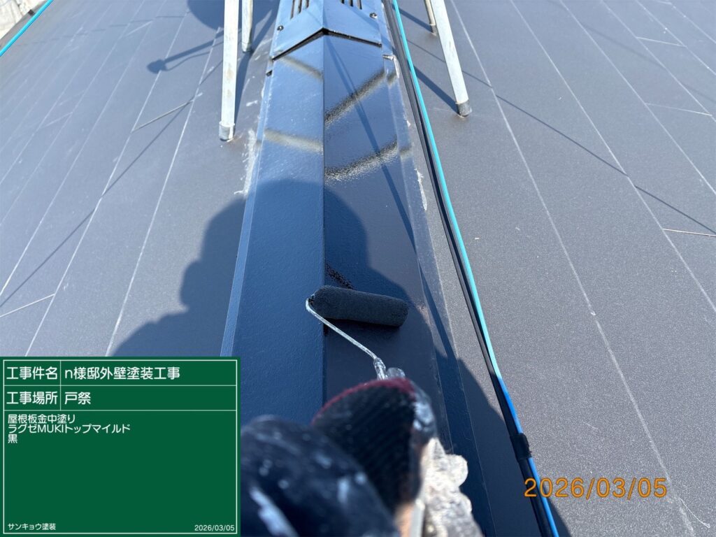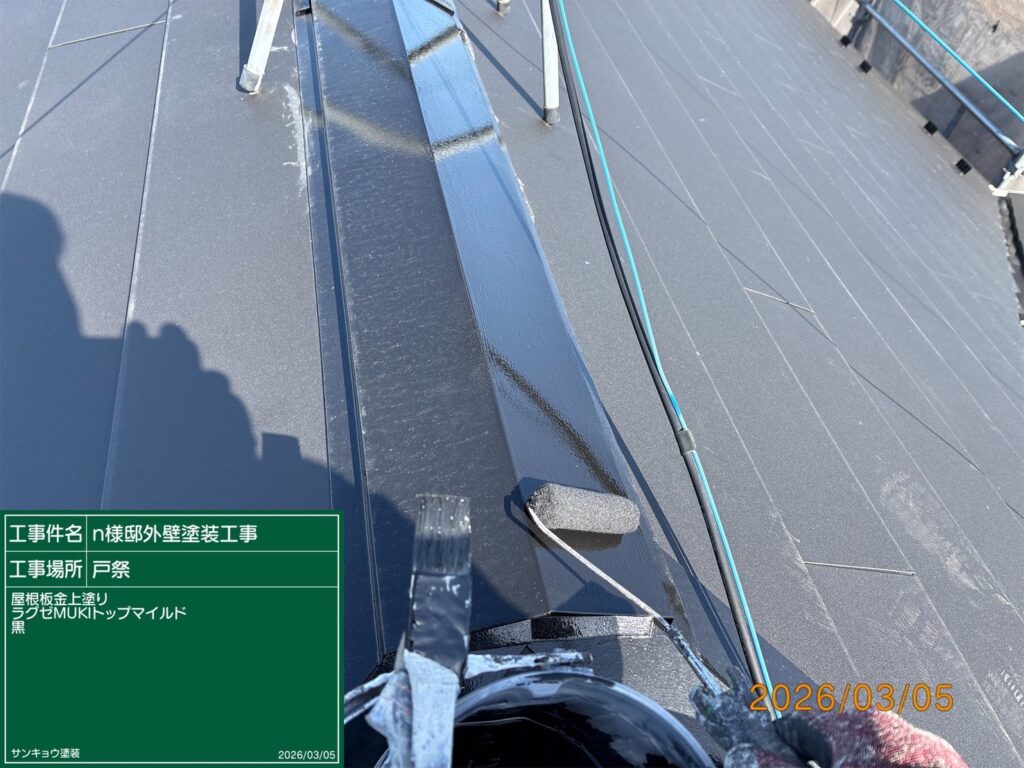 現場親方ブログ2026.03.05屋根板金上塗り・附帯部上塗り 宇都宮市戸祭町N様邸2026.3.6いつもありがとうございます。本日の作業内容のご説明をさせていただきます。本日は宇都宮市戸祭町N様邸で屋根板金の上塗りや附帯部の上塗りや各所見直し清掃などの作業をしてきました。無料お見積はこちら