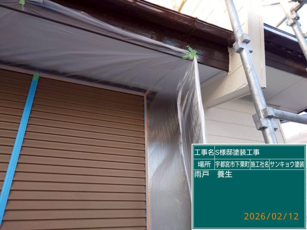 現場親方ブログ2026.02.12雨戸吹付養生・下屋根下塗り2回目 宇都宮市下栗町S様邸2026.2.12いつもありがとうございます改。本日の作業内容のご説明をさせていただきます。本日は雨戸吹付養生、下屋根下塗り2回目・物置波トタンケレン作業などをしてきました。無料お見積はこちら