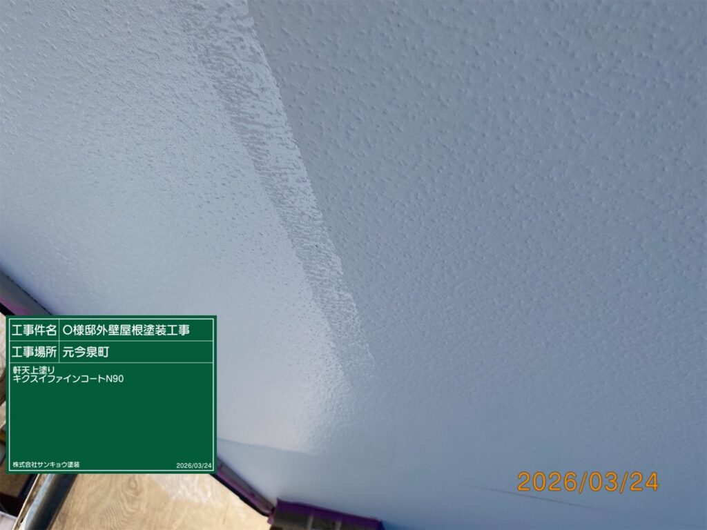 現場親方ブログ2026.03.242階外壁下塗り・軒天・雨樋上塗り 宇都宮市元今泉O様邸2026.3.24こんにちは現場担当の野中です。今日は宇都宮市元今泉O様邸で軒天や雨樋の上塗り、2階外壁の下塗り、コロニアル屋根の縁切りタスペーサーを取付けたりサイディングの上下の隙間を専用のコーキング材で埋めたりしました。無料お見積はこちら