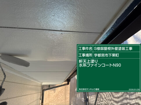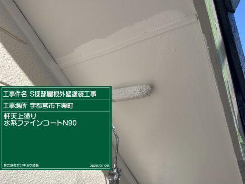 現場親方ブログ2026.1.28 いつもありがとうございます。本日は宇都宮市下栗町S様邸で軒天の1階中塗りと2階上塗りの作業をしてきました。