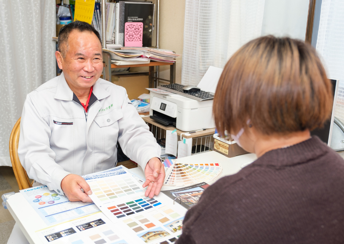 サンキョウ塗装は塗装技術者だけの専門店ですので、お見積の内容や工程、他社との違いなども、詳しく具体的に細部まで、ご納得いくまでご説明させていただいておりますので、ご安心ください。